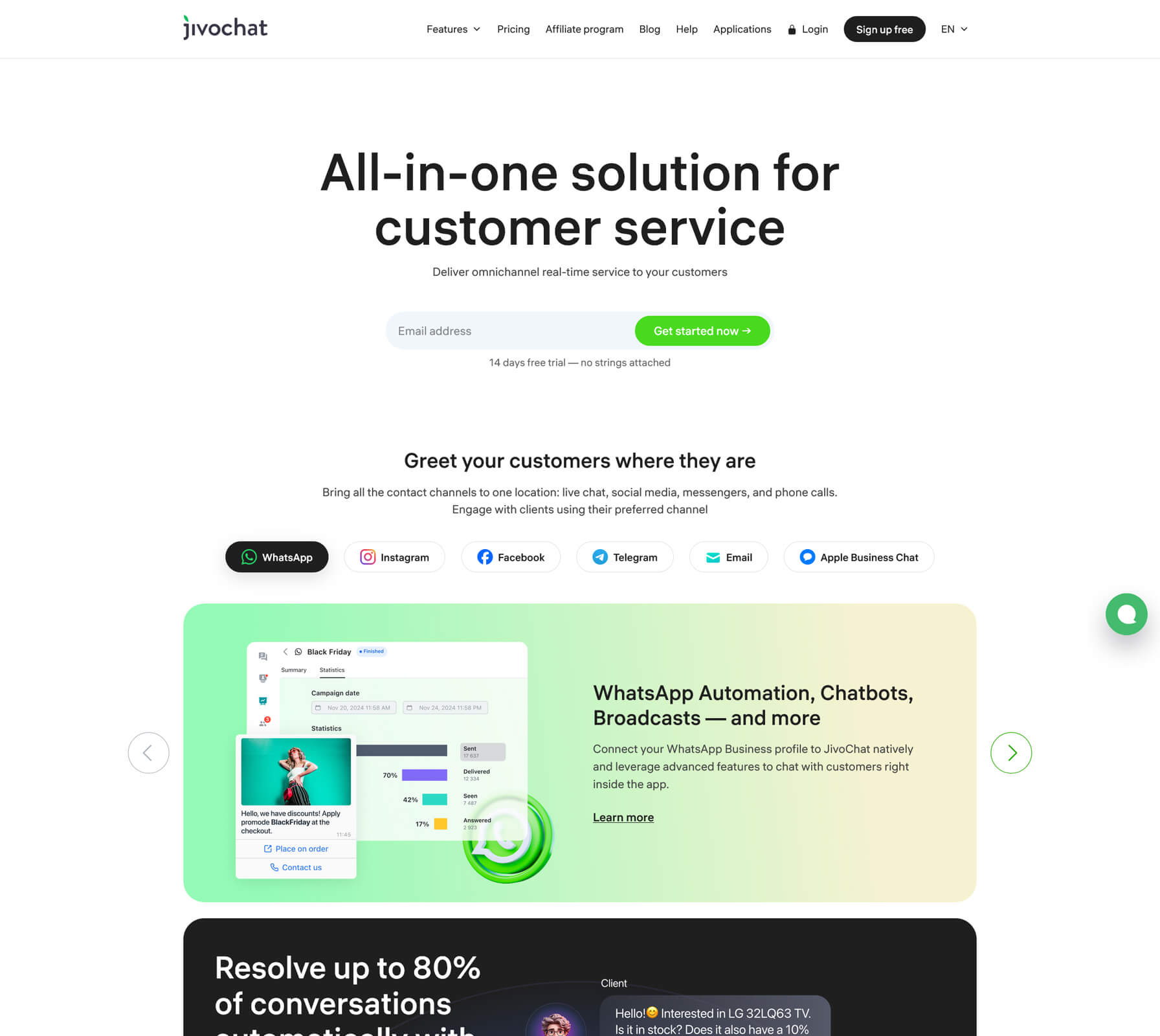 From a customer’s perspective it feels like one smooth experience across multiple channels. From your team’s perspective, everything is visible and manageable inside the JivoChat agent app.