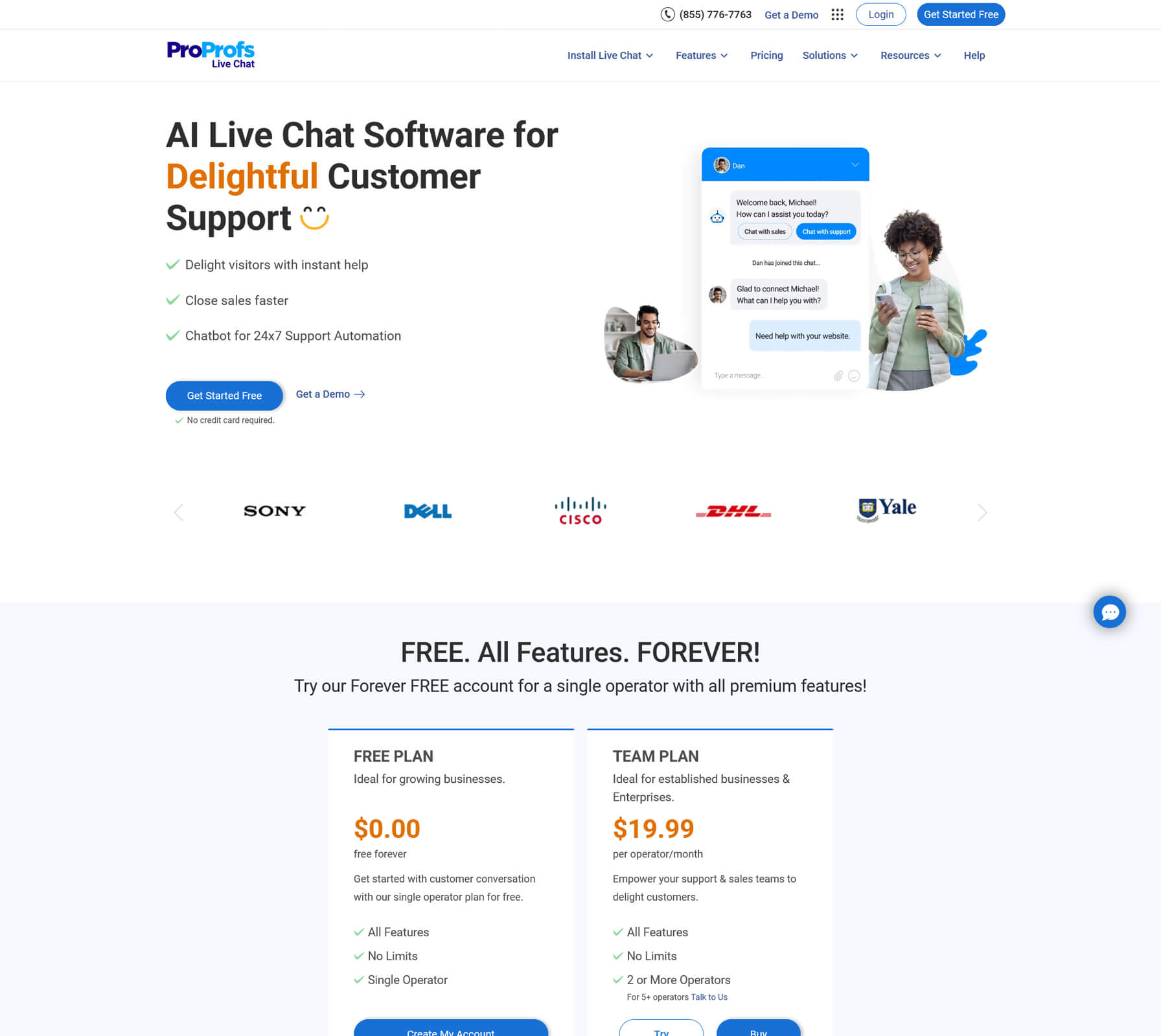 Choose ProProfs Chat. You can run a single operator setup for free, then move into team plans as chat volume and headcount grow.