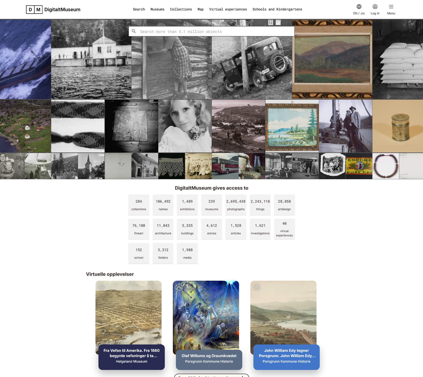 DigitaltMuseum aggregates digitized collections from museums across Norway and Sweden, including photographs, artifacts, design objects, and works of art. Many items carry public domain or similarly permissive rights statements that allow wide reuse, although you should always check the rights field on each record. The service is operated by KulturIT in collaboration with participating Nordic museums that manage their own content and metadata.