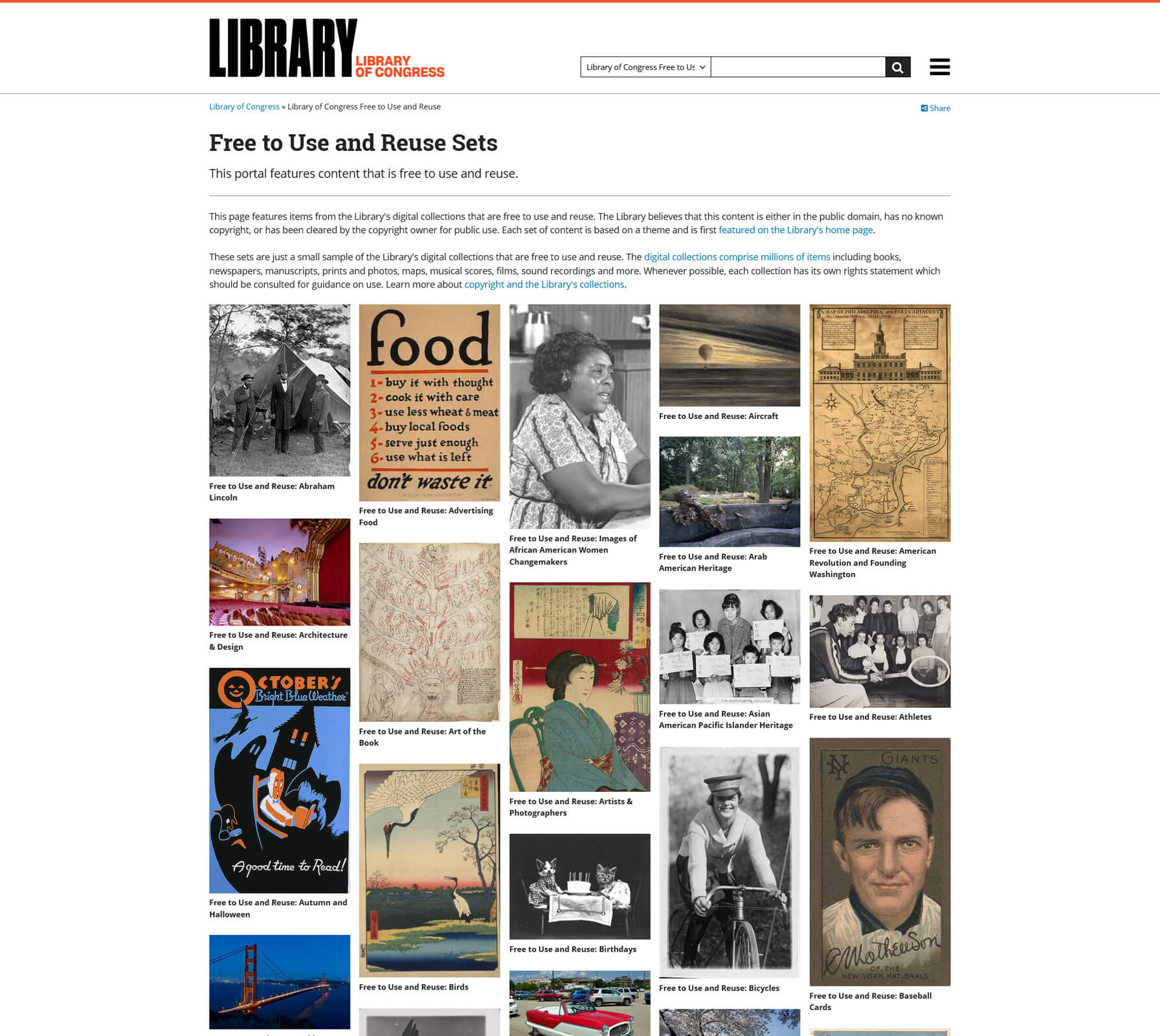 Visit site Library of Congress “Free to Use and Reuse” Collections