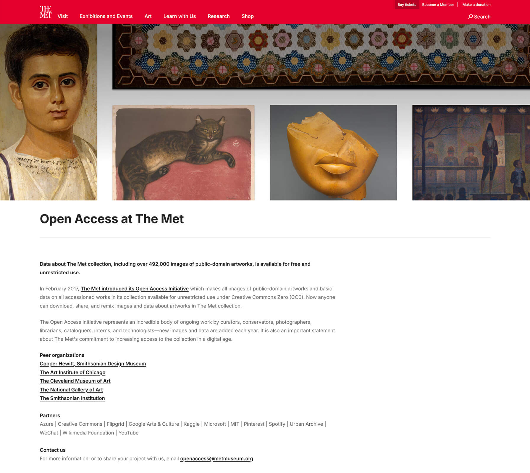 The Met’s Open Access program lets you download high resolution images of hundreds of thousands of artworks whose images are in the public domain. You can filter the online collection to show only Open Access items, and those images can be used, remixed, and shared for any purpose, including commercial projects. The program is operated by The Metropolitan Museum of Art in New York and uses a CC0 dedication for its public domain images.