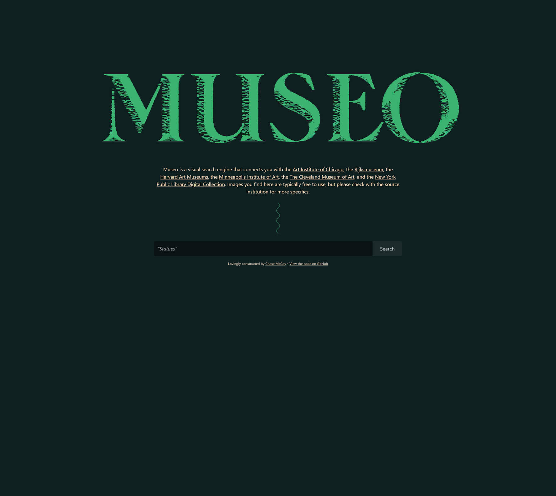Museo is a visual search engine that connects directly to open access image APIs from museums such as the Art Institute of Chicago, Rijksmuseum, Harvard Art Museums, the Cleveland Museum of Art, and the New York Public Library. It returns high quality art and historical imagery that is typically public domain or under very permissive licenses, with links back to the source institution for license confirmation. Museo is an independent, open source project run by a small developer team that aggregates these museum collections into one clean, ad free interface.