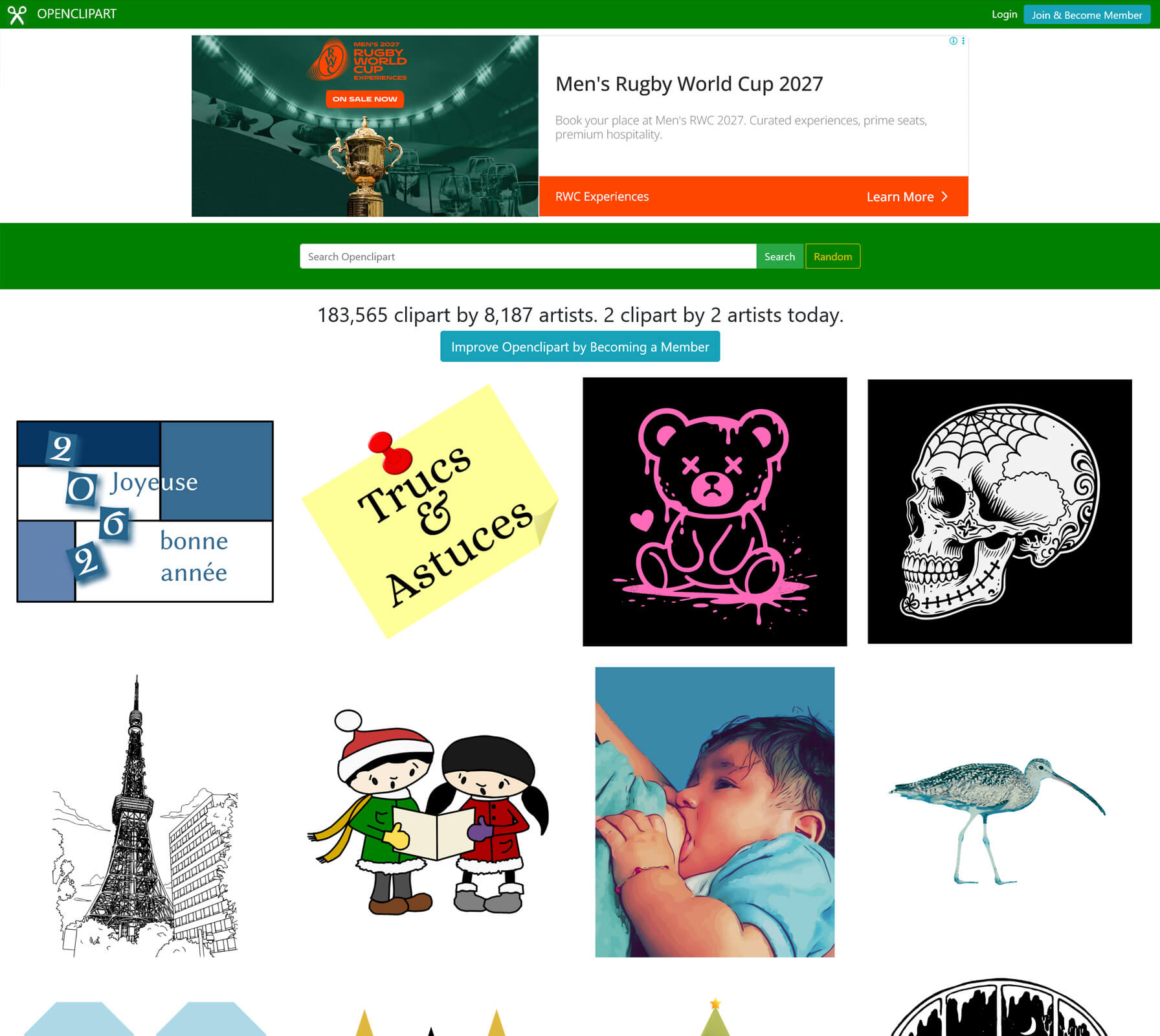 Openclipart is a long running repository of vector clip art that artists have explicitly placed in the public domain. It offers hundreds of thousands of simple icons, symbols, and illustrations suitable for infographics, interfaces, and educational materials. Openclipart is owned and hosted by the Fabricatorz Foundation and powered by a community that traces its roots to the early Open Clip Art Library founded by Jon Phillips and Bryce Harrington.