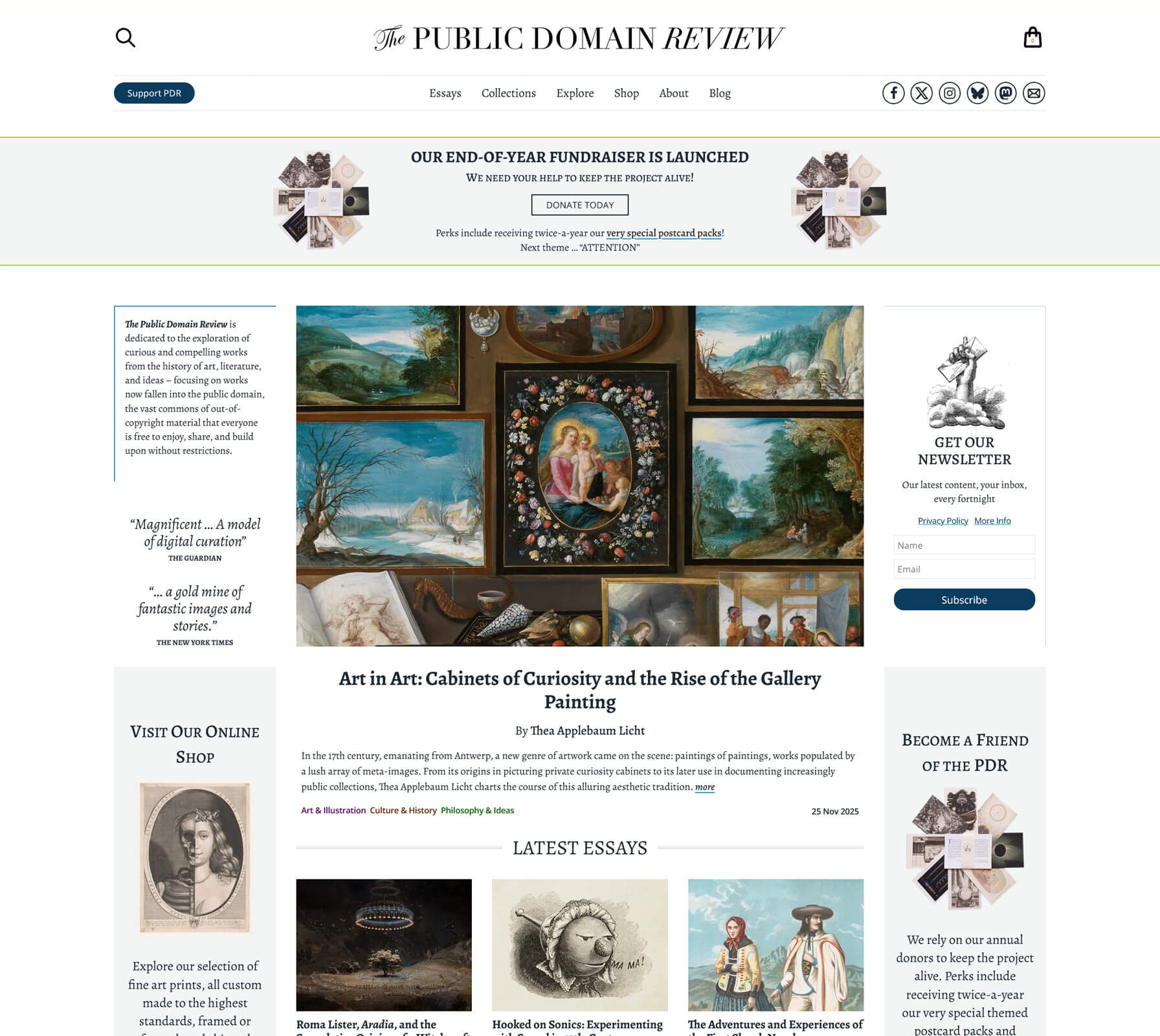 The Public Domain Review curates public domain images, texts, films, and audio from libraries and archives, with a focus on unusual, historic, and scholarly material. Its image collections are small but very carefully selected and annotated, which is useful when you need context rather than generic stock imagery. The site is produced by The Public Domain Review Community Interest Company, an independent not for profit publisher that originally grew out of Creative Commons and Open Knowledge circles.