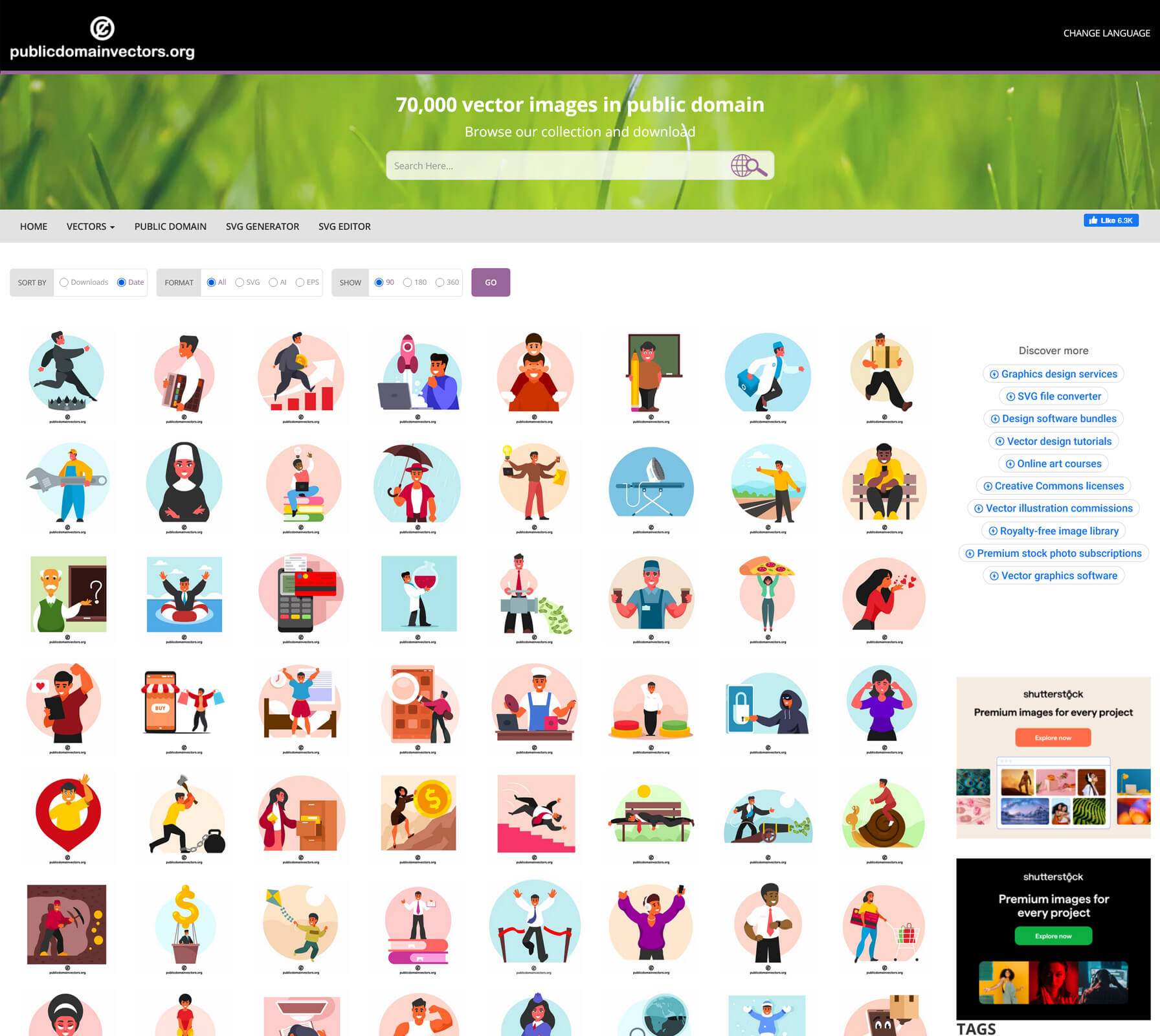 PublicDomainVectors.org specializes in vector clip art, icons, and illustrations whose uploaders have waived their rights to the extent possible under law. Files are downloadable as SVG, EPS, AI, and other vector formats, which makes them ideal for editing in design software. The site is run as PublicDomainVectors.org by its operators, who provide the platform and state that contributors dedicate their images to the public domain.