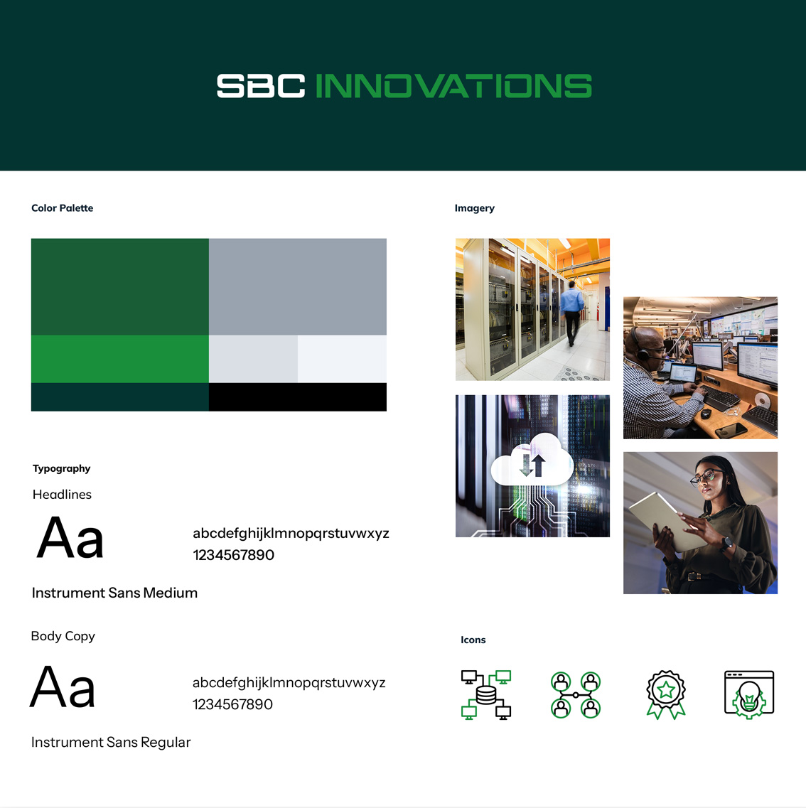 SBC Innovations underwent a brand modernization to better reflect its expertise in cybersecurity, cloud solutions, and IT modernization for government clients. Alliance Interactive developed a unified visual identity built around clarity, trust, and innovation—introducing a refined color palette, modern typography, and consistent iconography that convey precision and authority. The new branding standards established cohesive guidelines for digital and print use, ensuring every touchpoint—from the website to presentations—communicates the same confident, mission-driven tone that defines SBC Innovations’ forward-looking approach.